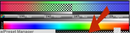 Clicking and dragging the Brightness button (#6) to the right will increase the brightness of your gradient (add more white to the colors.) Dragging to the left will, you guessed it, decrease the brightness! Clicking and dragging on the Saturation button (#5) to the right will increase the saturation of the colors in your gradient, producing clearer tones of your colors. Dragging to the left will add more gray to each color, turning the entire gradient grayscale at -100% Saturation.